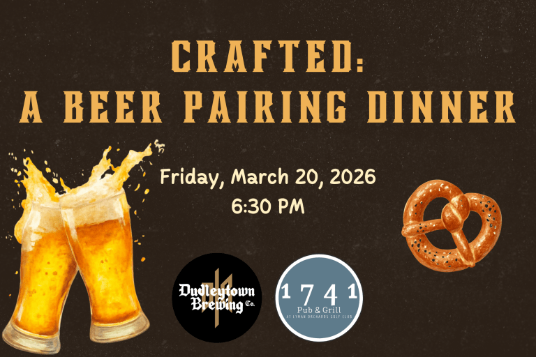 Enjoy a specially curated multi-course dinner, each dish paired with a craft beer from Dudleytown Brewing Company for the ultimate flavor experience!📅 Friday, March 20 | 6:30 PM